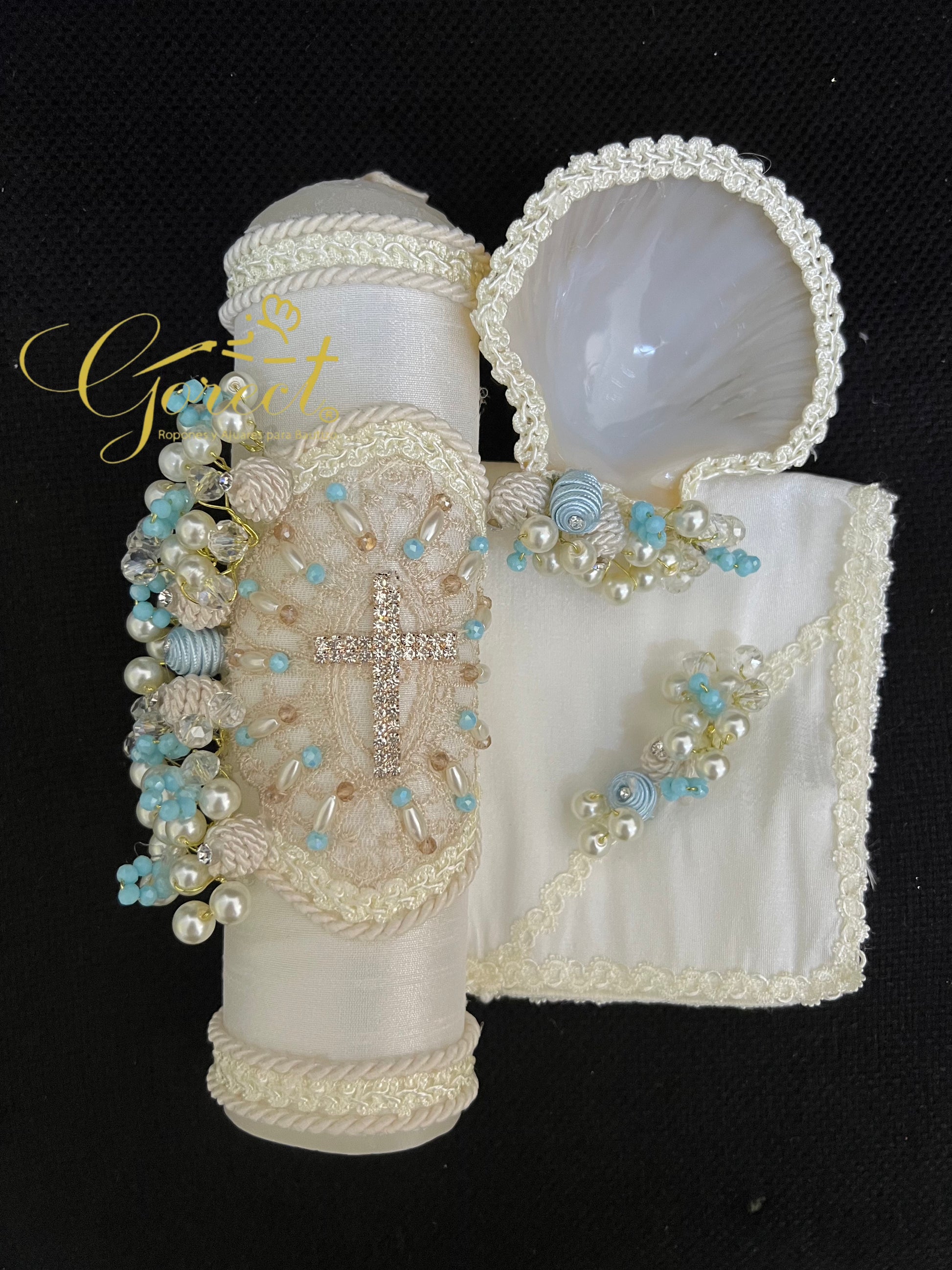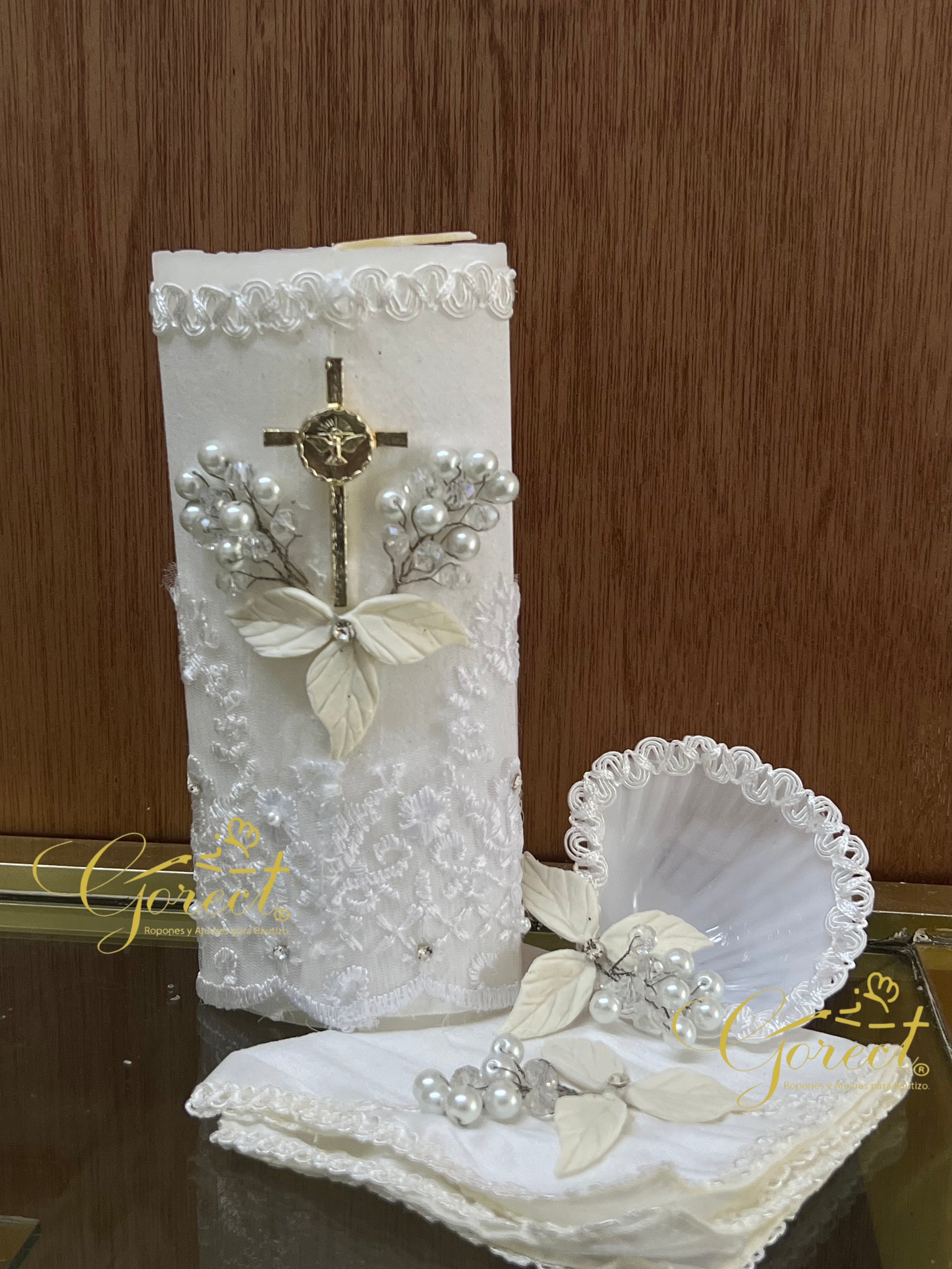 INCLUYE VELA, CONCHA Y TRAPITO. (DECORADO Y MISMO COLOR ACUERDO EL MODELO DEL ROPON SELECIONADO)